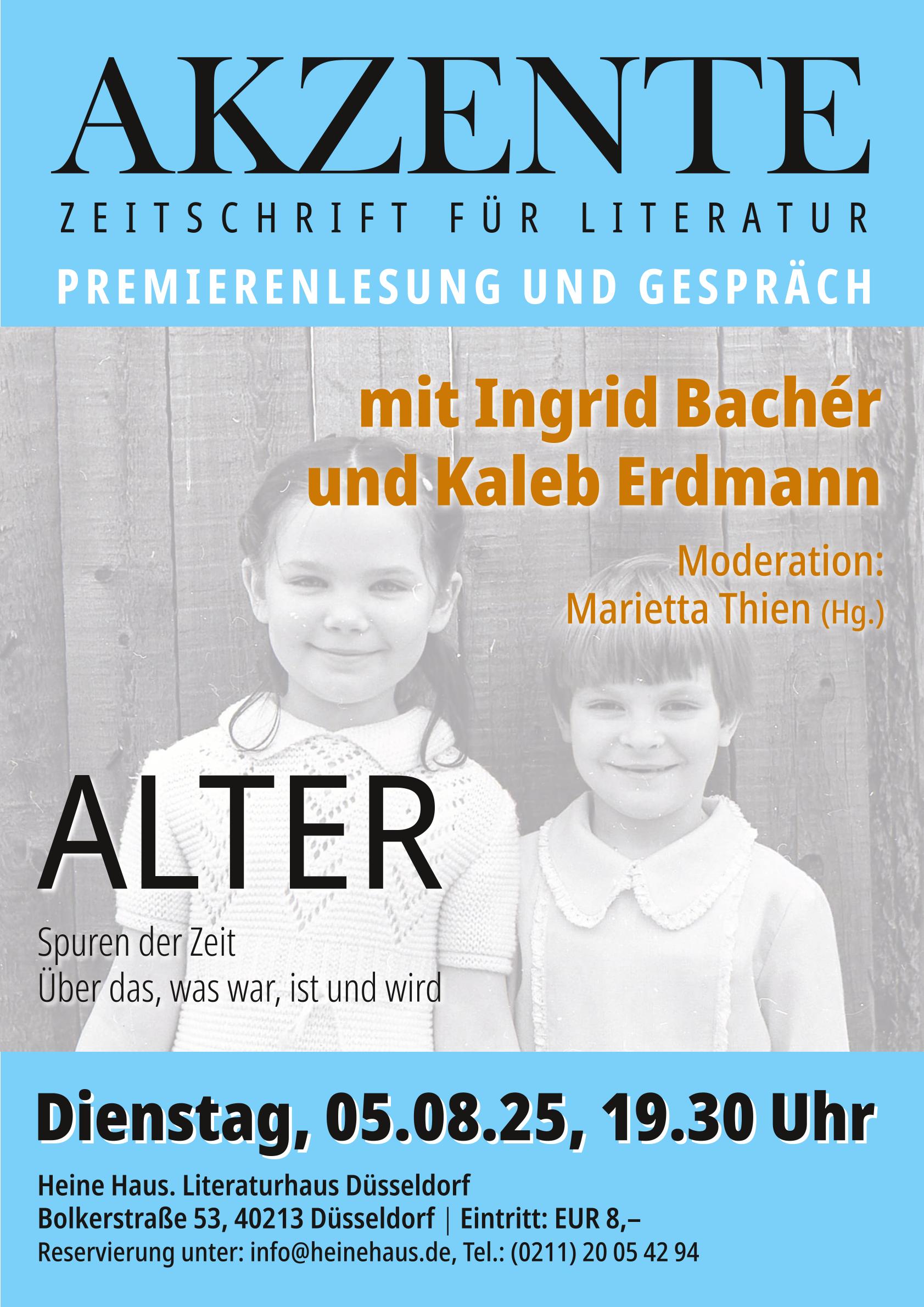 Im aktuellen AKZENTE-Heft »ALTER« finden sich ganz unterschiedliche – junge und alte – Stimmen und Blickwinkel von 28 Autor:innen, die in Gedichten, Prosastücken, Briefen und Essays über die Risse, Zumutungen, Abwägungen, Schwebezustände und Auflösungen des Alters schreiben. Im Zusammenlesen entsteht ein vielschichtiges Bild davon, wie unterschiedlich Alter erlebt und literarisch gedeutet wird.